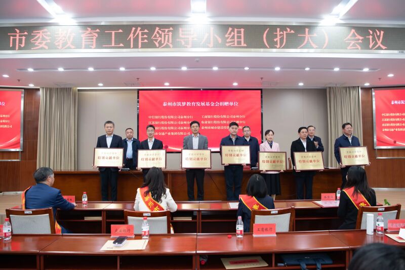 近日,市委教育工作領(lǐng)導(dǎo)小組(擴(kuò)大)會(huì)議召開(kāi),會(huì)上向泰州市筑夢(mèng)教育發(fā)展基金會(huì)“重教興學(xué)尊師特別貢獻(xiàn)單位”授牌。